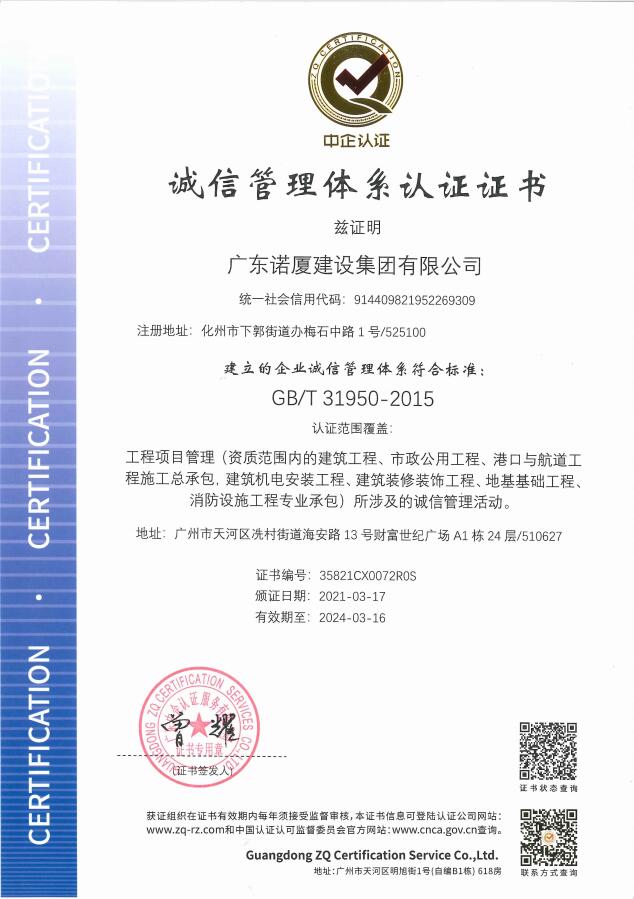 廣東諾廈建設集團有限公司是諾廈集團的核心企業(yè),具備國家房屋建筑工程施工總承包壹級、市政工程施工總承包壹級、港口與航道工程總承包、建筑裝修裝飾工程、消防設施工程、地基基礎工程、機電設備安裝工程、體育場地設施工程、建筑智能化工程、河湖整治工程、水利水電工程等資質。......